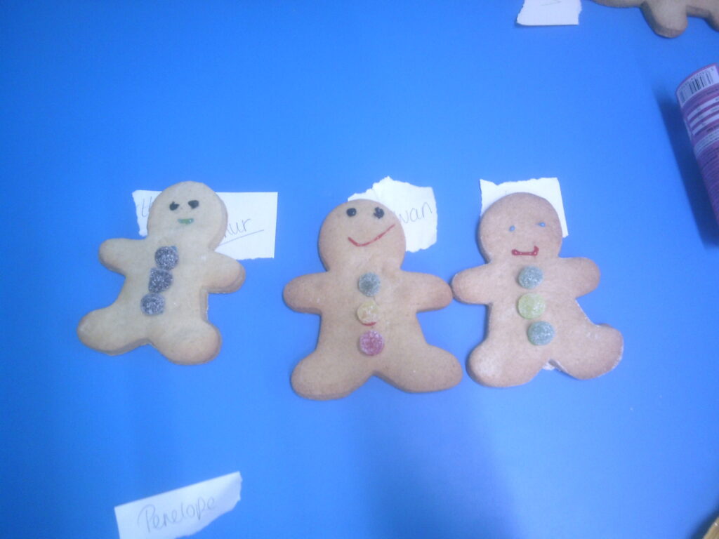 We began by using our collaborative skills to create a dragon. Let me introduce…. Bungalow Snowflake, Princess Tooty, Rainbow, Scary Jingles and Jolly Rainbow.