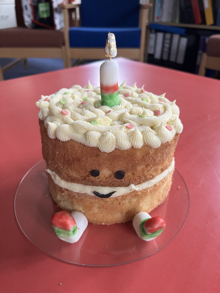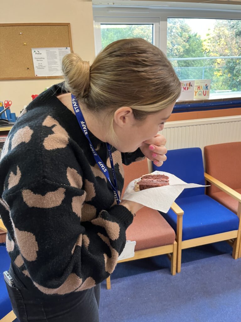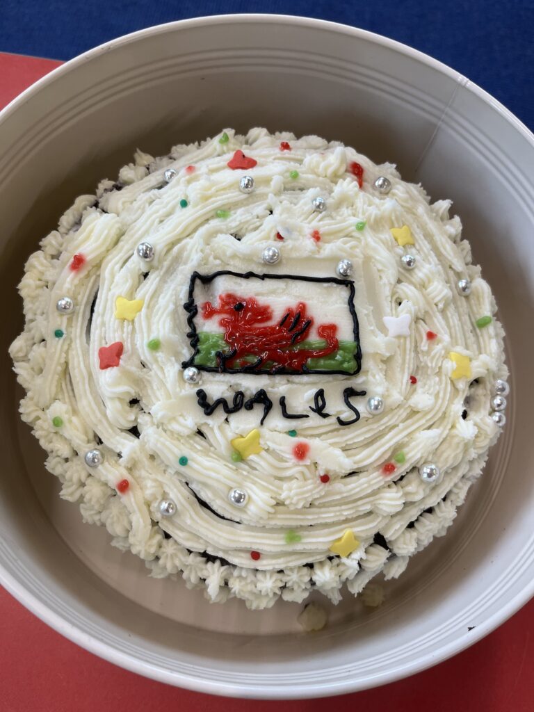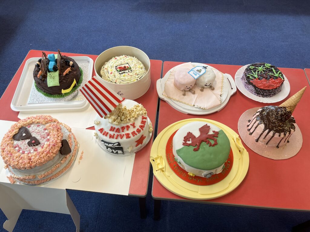 Look what our wonderful bakers managed…! They were judged on decoration, layers and taste! Roedden nhw’n blasus iawn. Da iawn, bawb! Pob lwc to our baker in the next round!