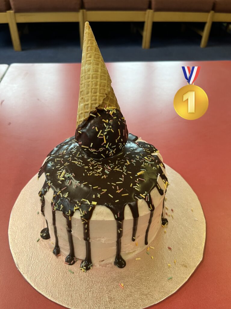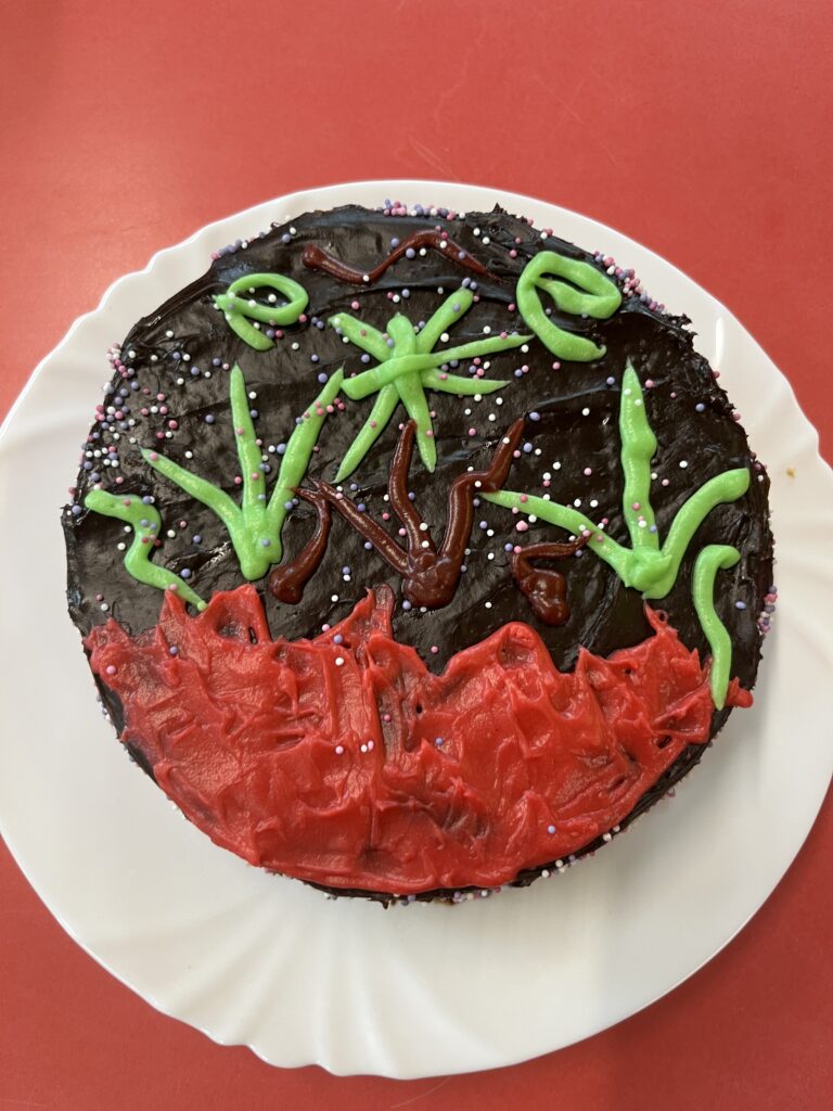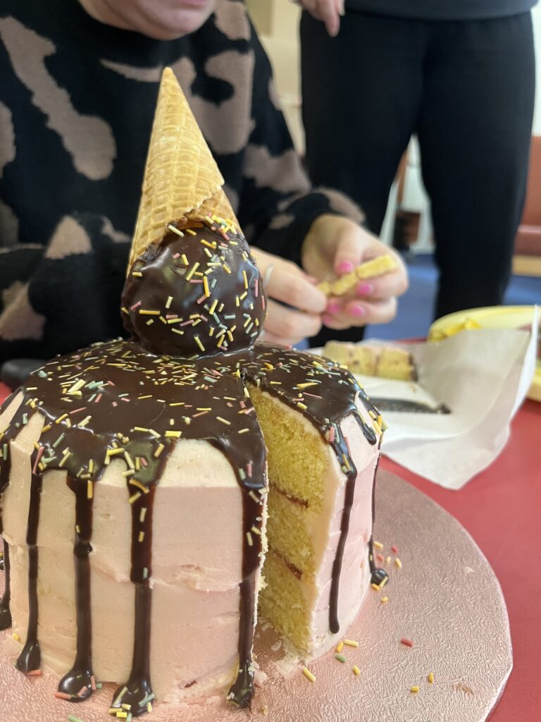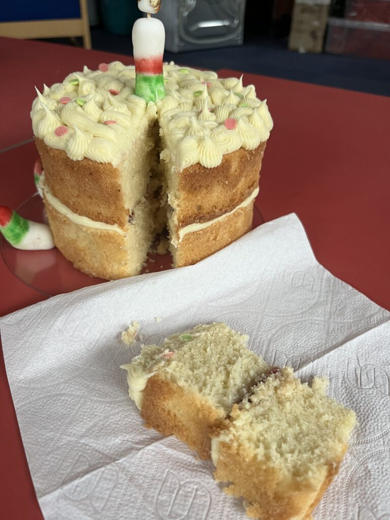 Look what our wonderful bakers managed…! They were judged on decoration, layers and taste! Roedden nhw’n blasus iawn. Da iawn, bawb! Pob lwc to our baker in the next round!