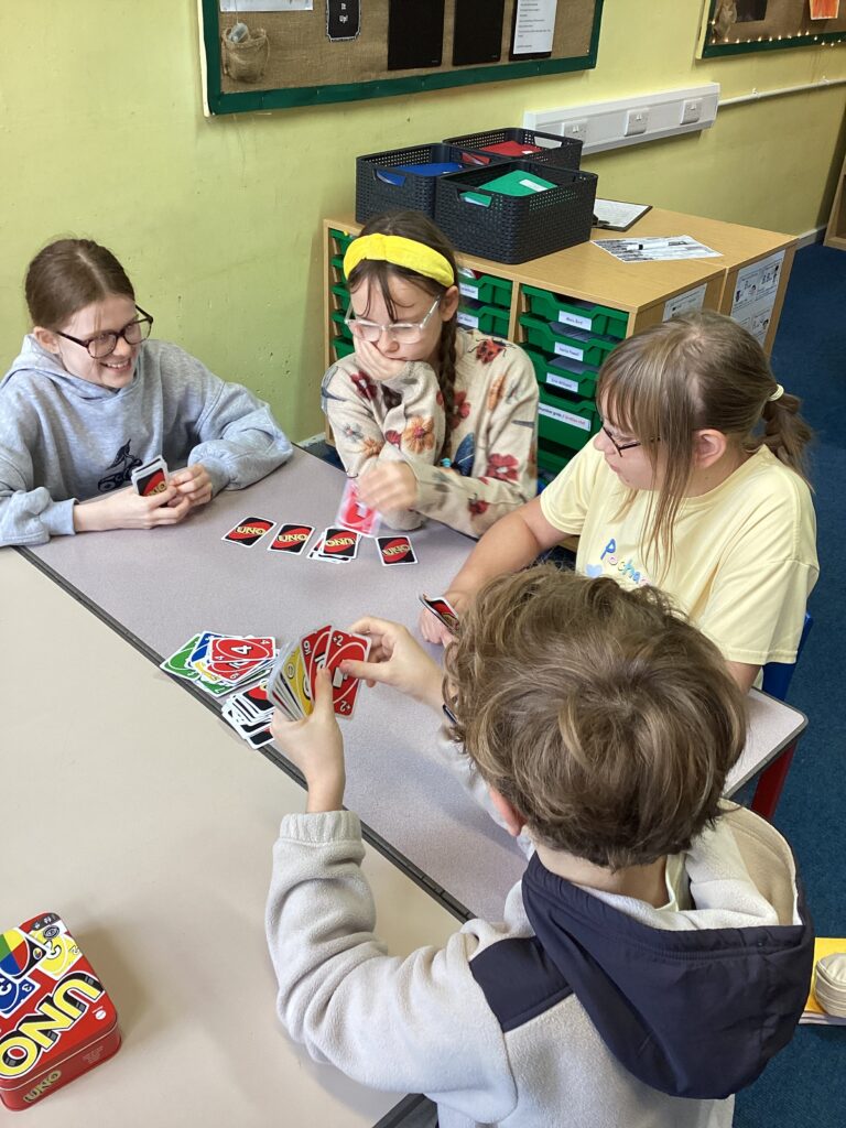 Pupils then spent some time watching videos of themselves from when they were younger. After break we had a games sessionโฆUNO, Twister, Jenga, Dobble or colouring in. Quality time with friends, away from screens! Lunch was followed by paining and some games outside!