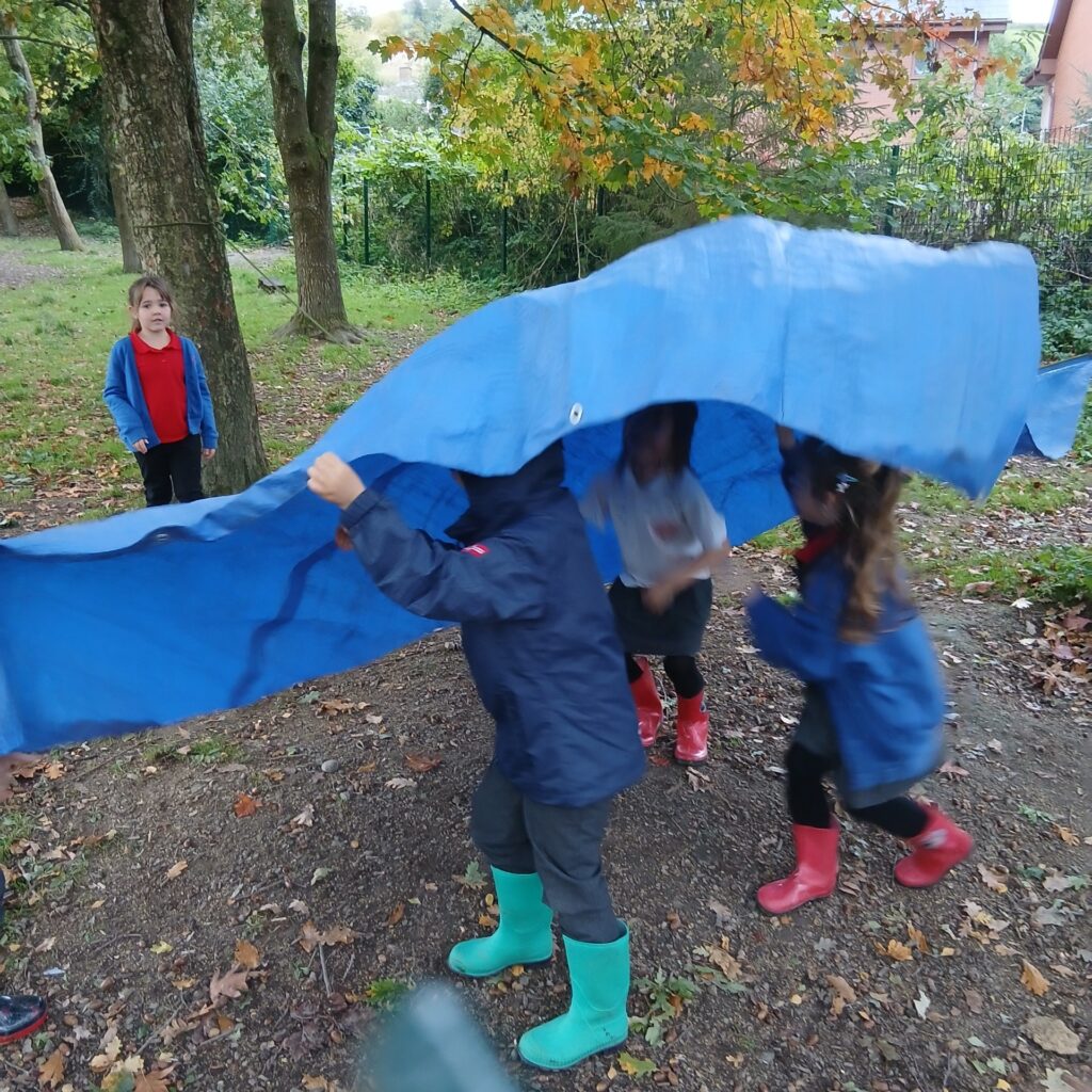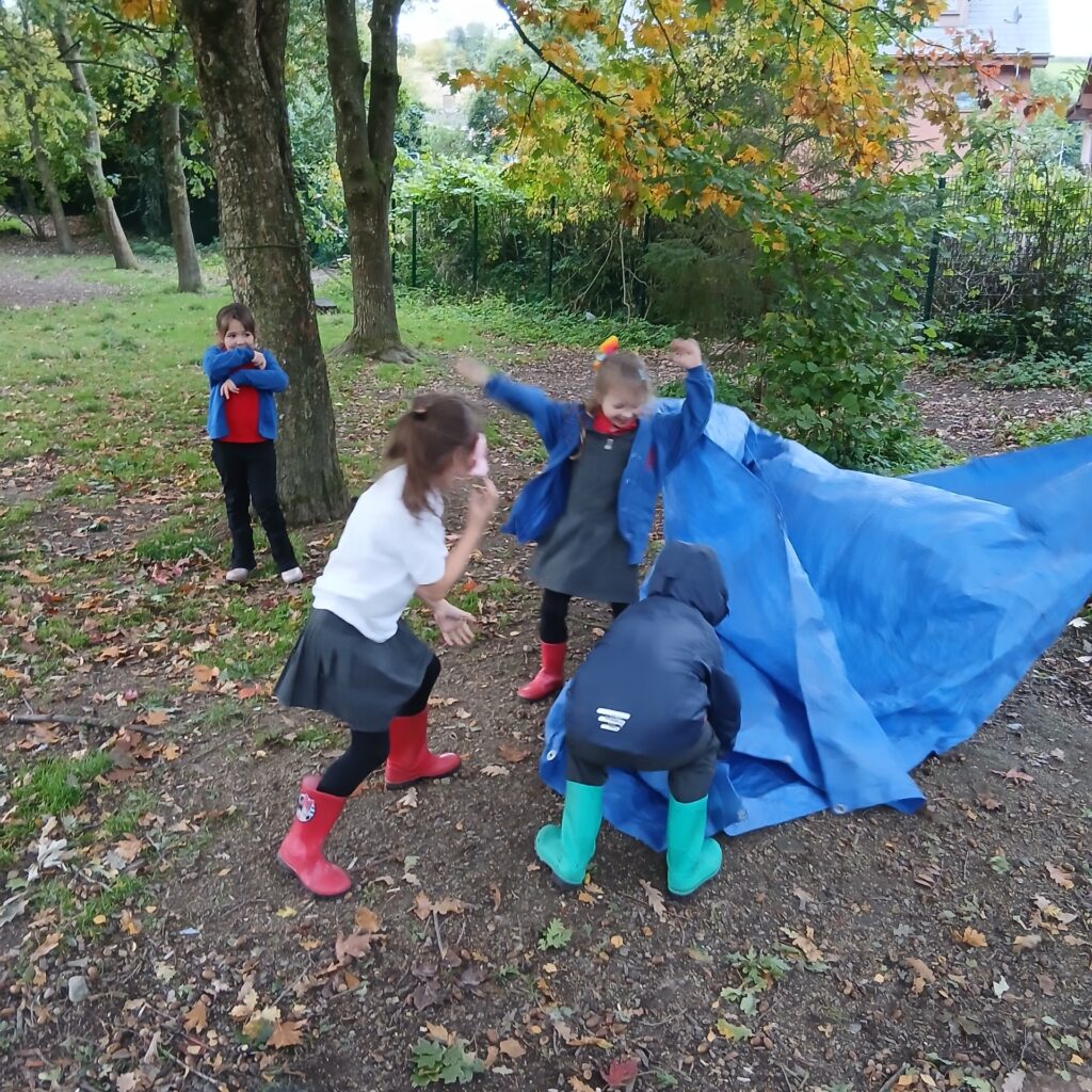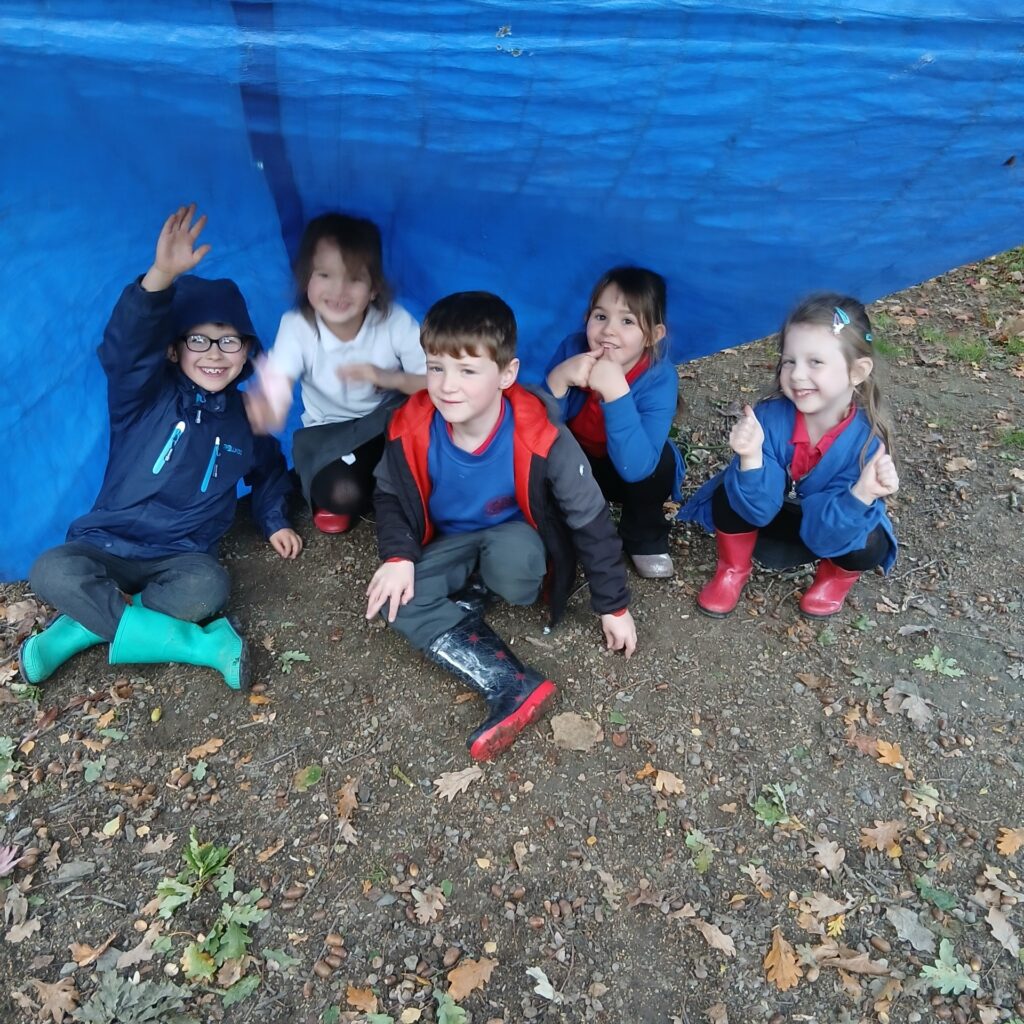 In Fun Club we have been learning enjoying building some shelters in the Forest School area.
