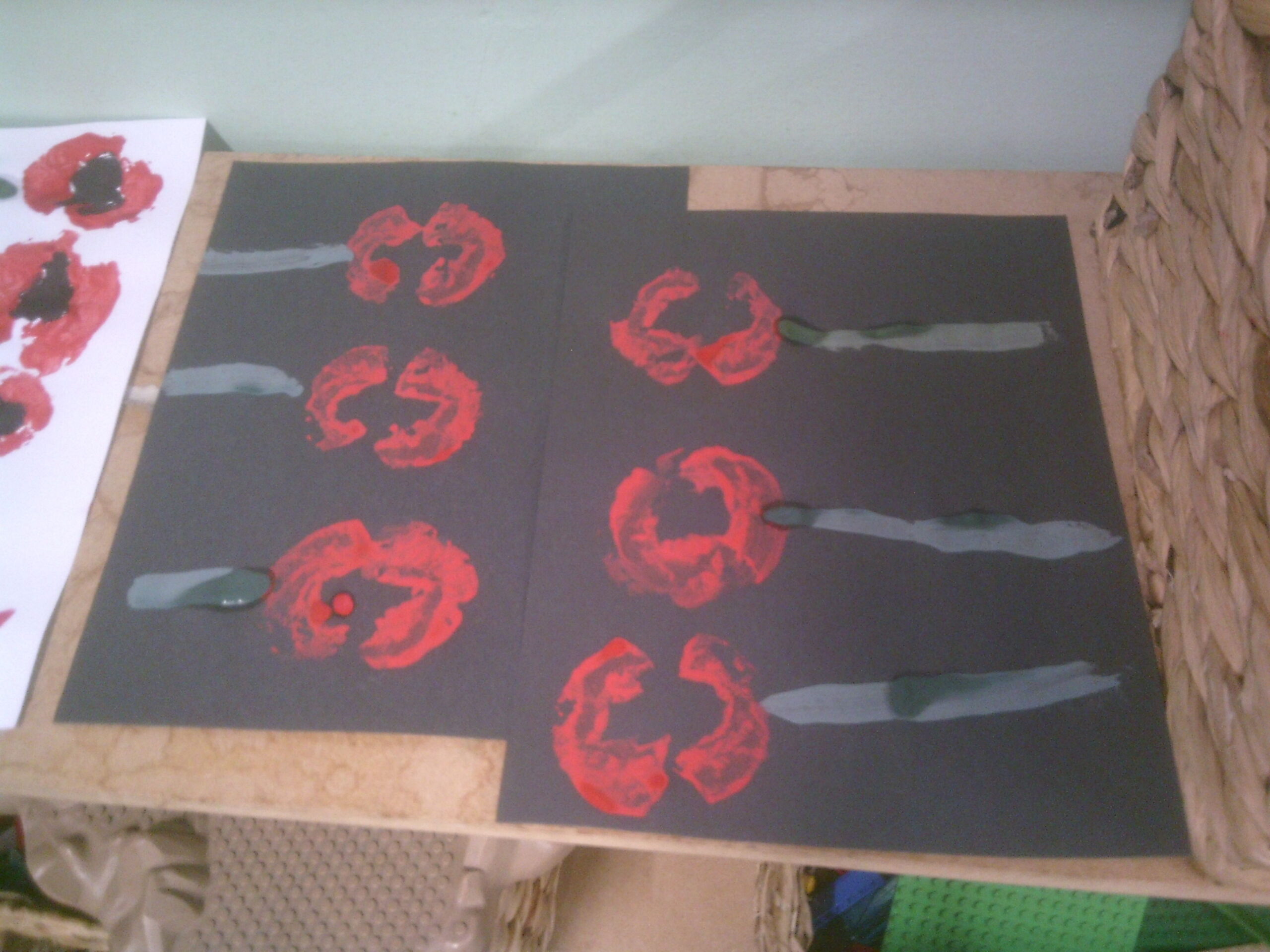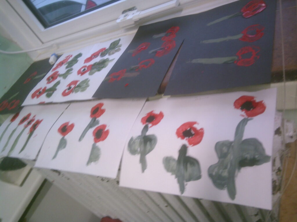 Today we learned about Remembrance Day. We enjoyed potato printing poppies.