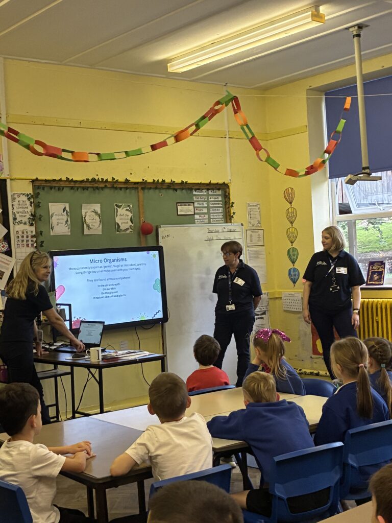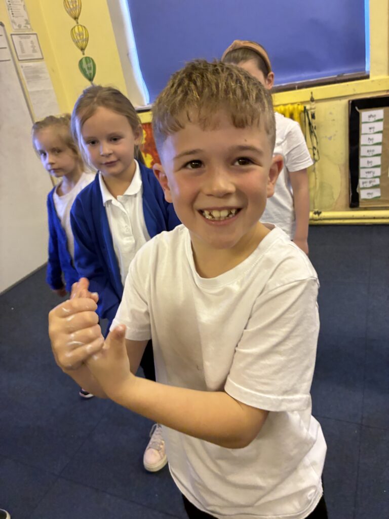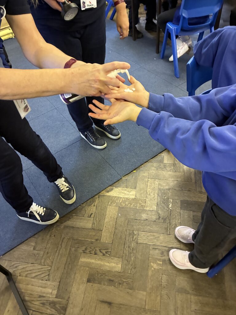 We had a visit from Powys Teaching Health Board who carried out a handwashing workshop with us. We looked at the impact a sneeze can have, and how far it can travel. We also looked at the importance of washing your hands correctly.