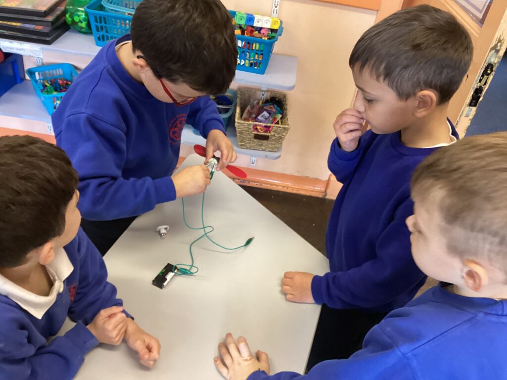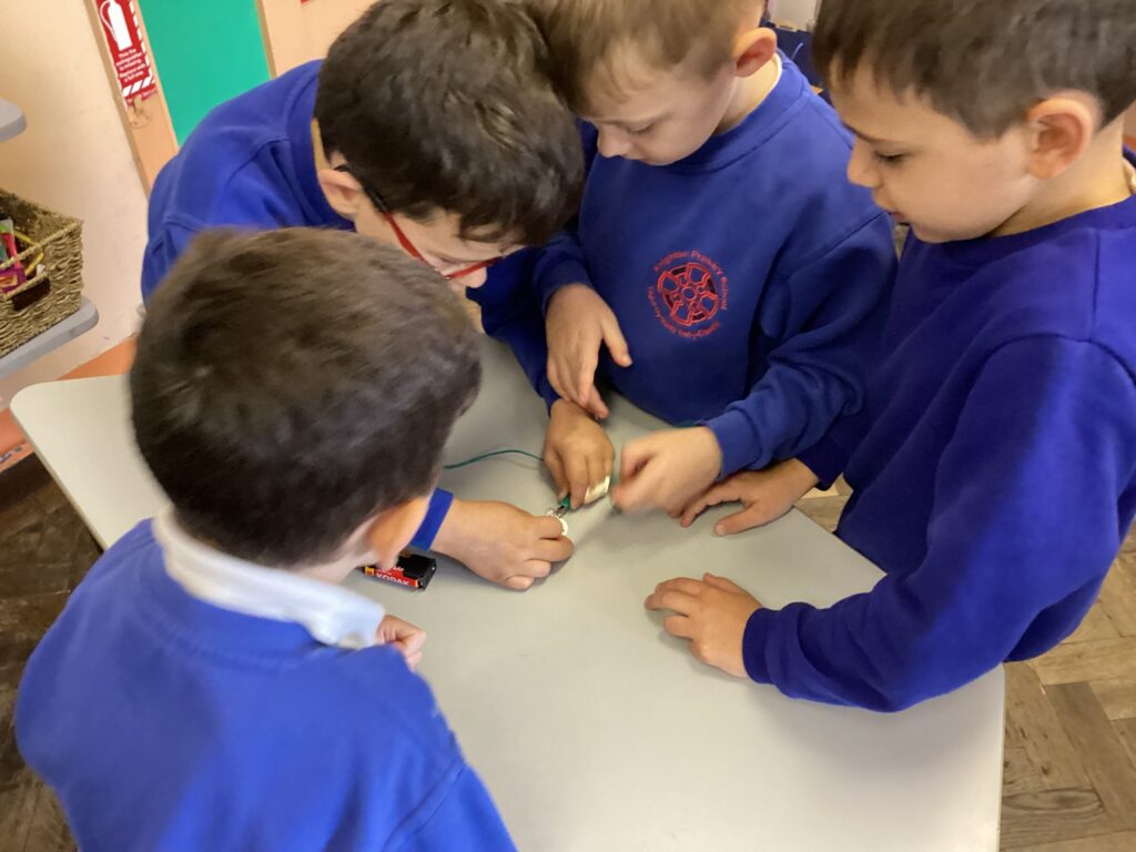 Energy for Change were very impressed with our information texts explaining ‘how windmills work’ So they challenged our team of engineers to make an electrical circuit. Here are some of our resilient investigators experimenting with building their circuits.